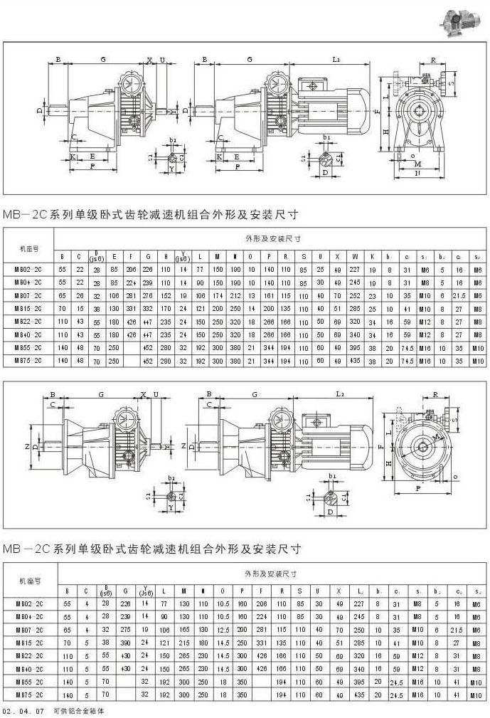 MB-2C系列單級臥式齒輪減速機組合外型及安裝尺寸???MB-2C系列單級臥式齒輪減速機組合外型及安裝尺寸???